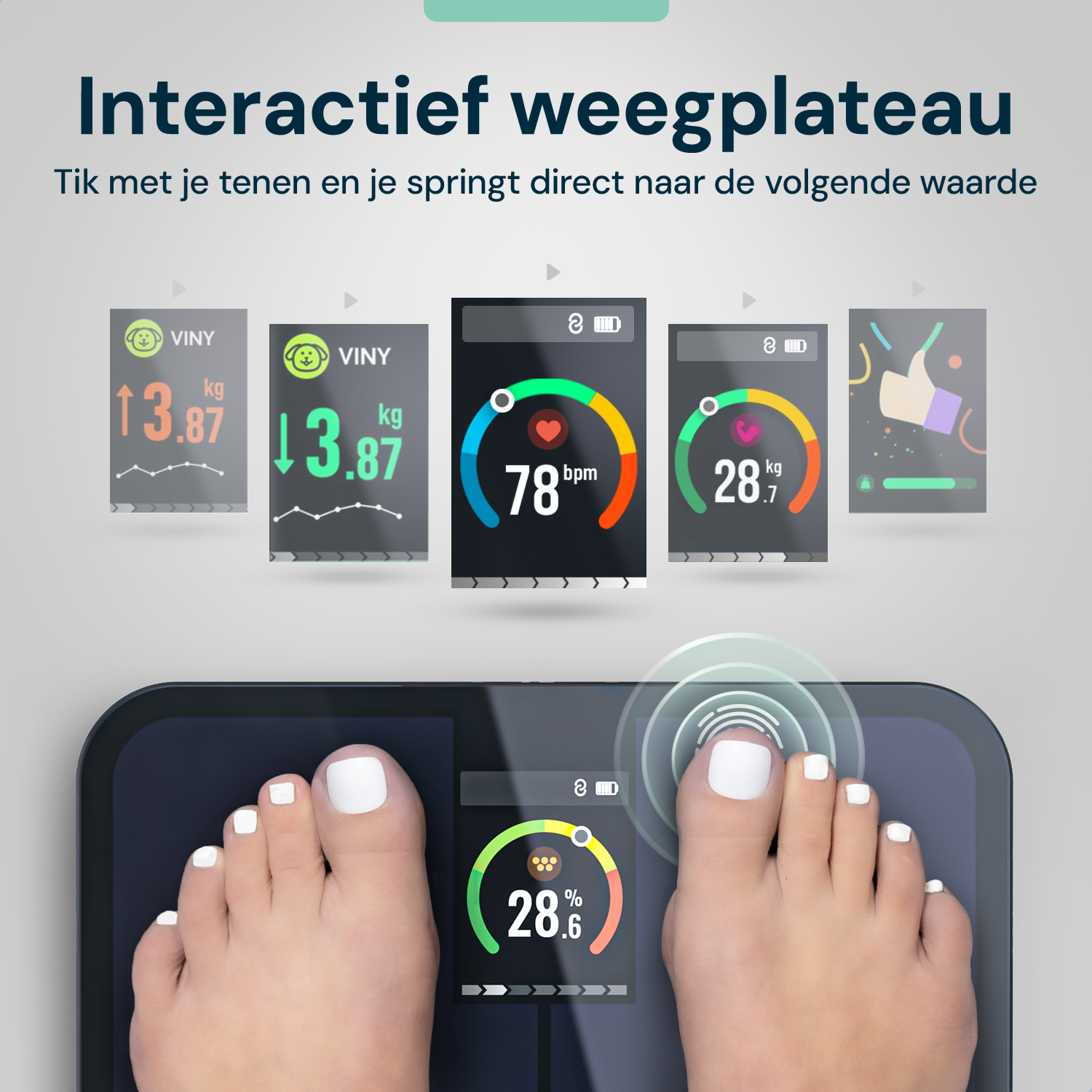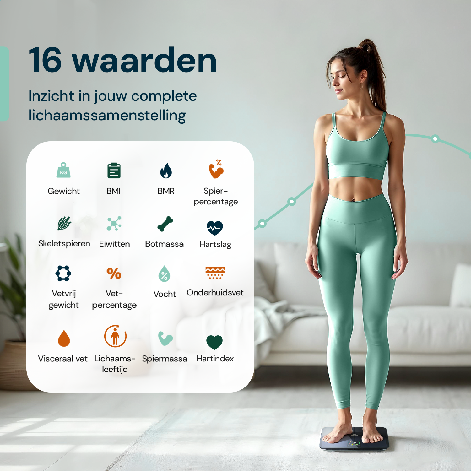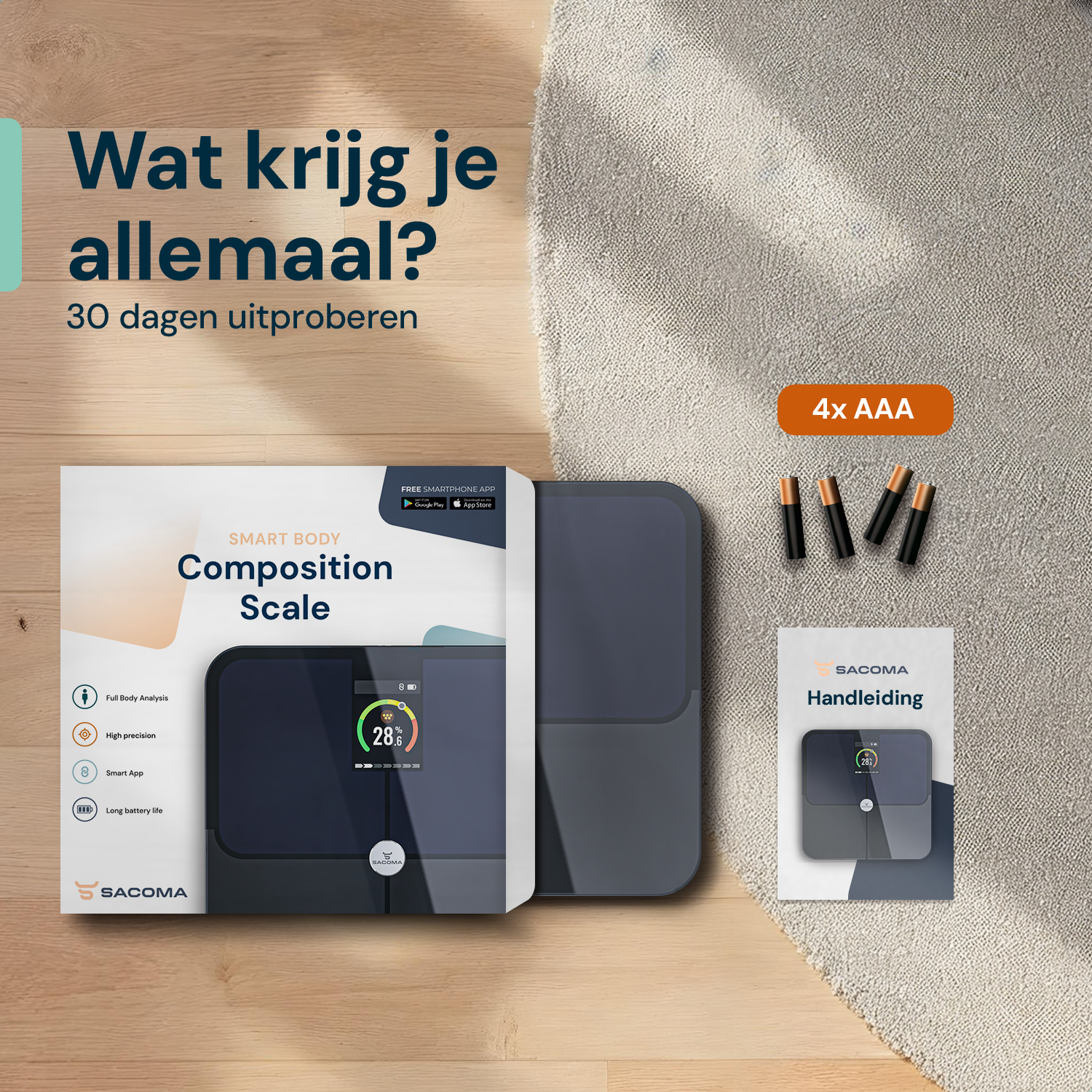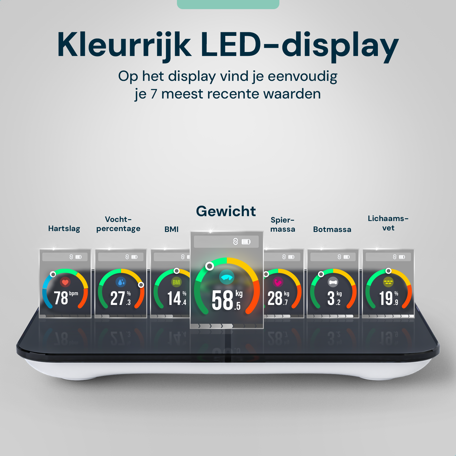 In our e-book you will find detailed explanations of all the measurements our scale performs, such as body fat percentage, muscle mass, body water, bone mass and more.