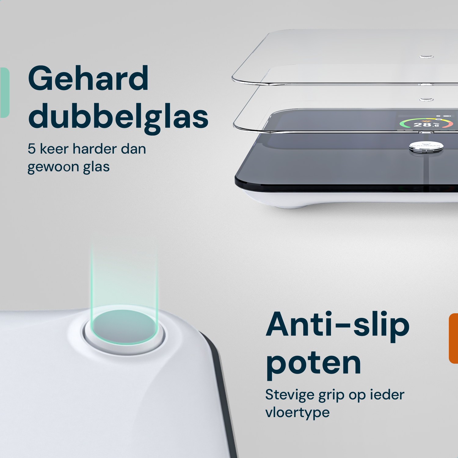 Thanks to advanced bioelectrical impedance analysis (BIA) and our patented 4G microprocessor, the scale is up to three times more accurate than standard scales. Furthermore, our measurement software is calibrated based on extensive in-house DEXA scans, which are considered the gold standard for body composition measurements worldwide.