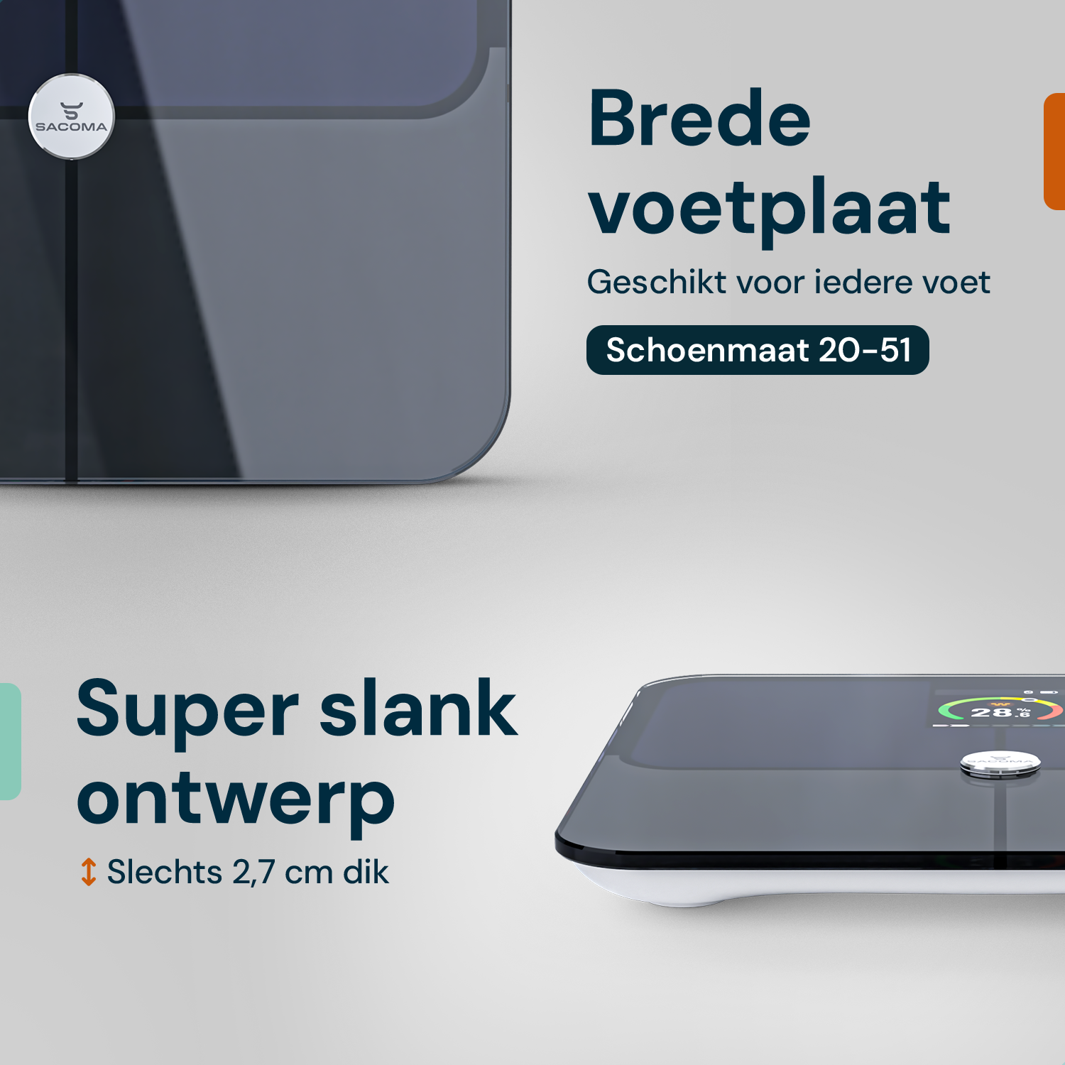 Get instant insight into your body. The Sacoma® Pro performs a comprehensive measurement with four powerful sensors, ensuring fast and consistent results.