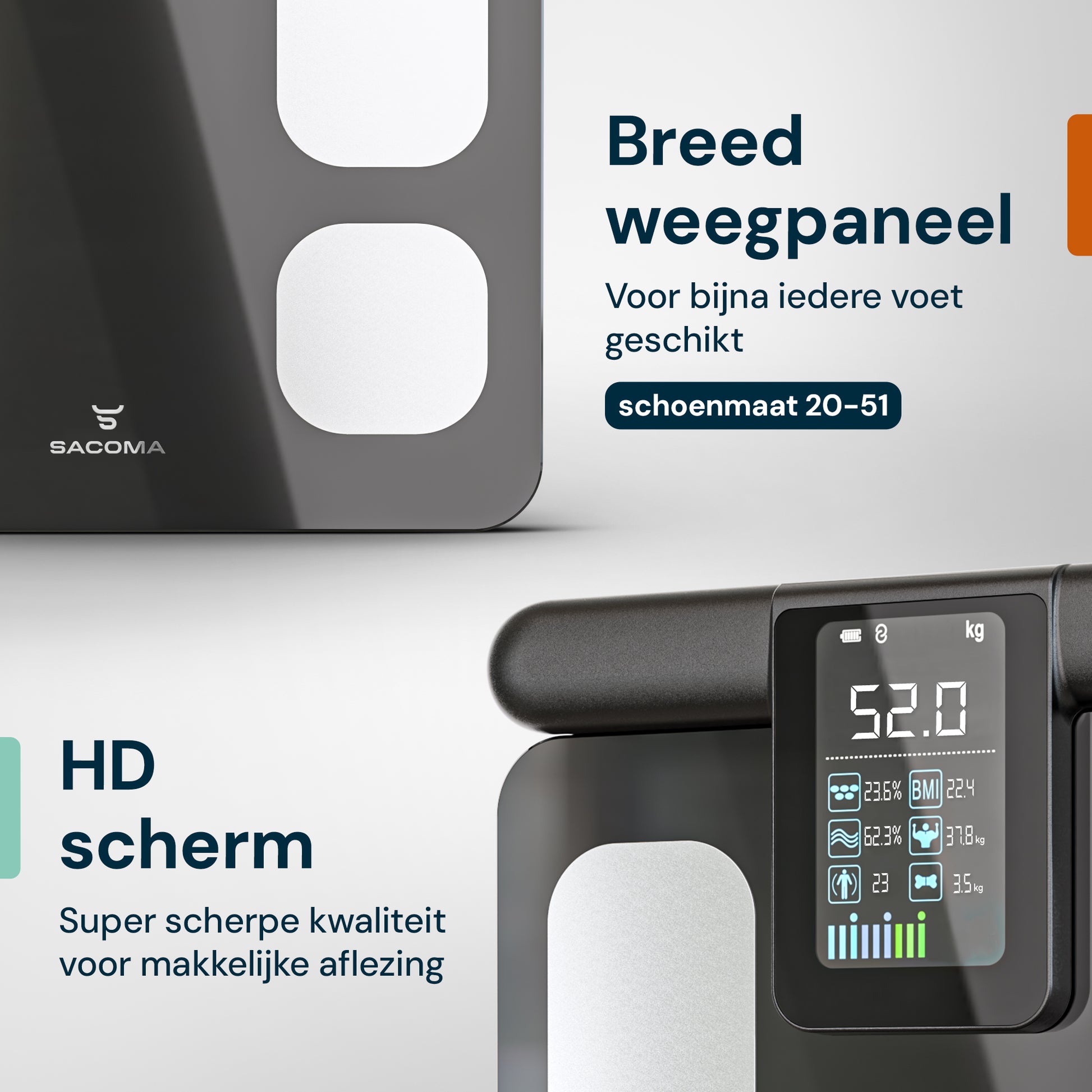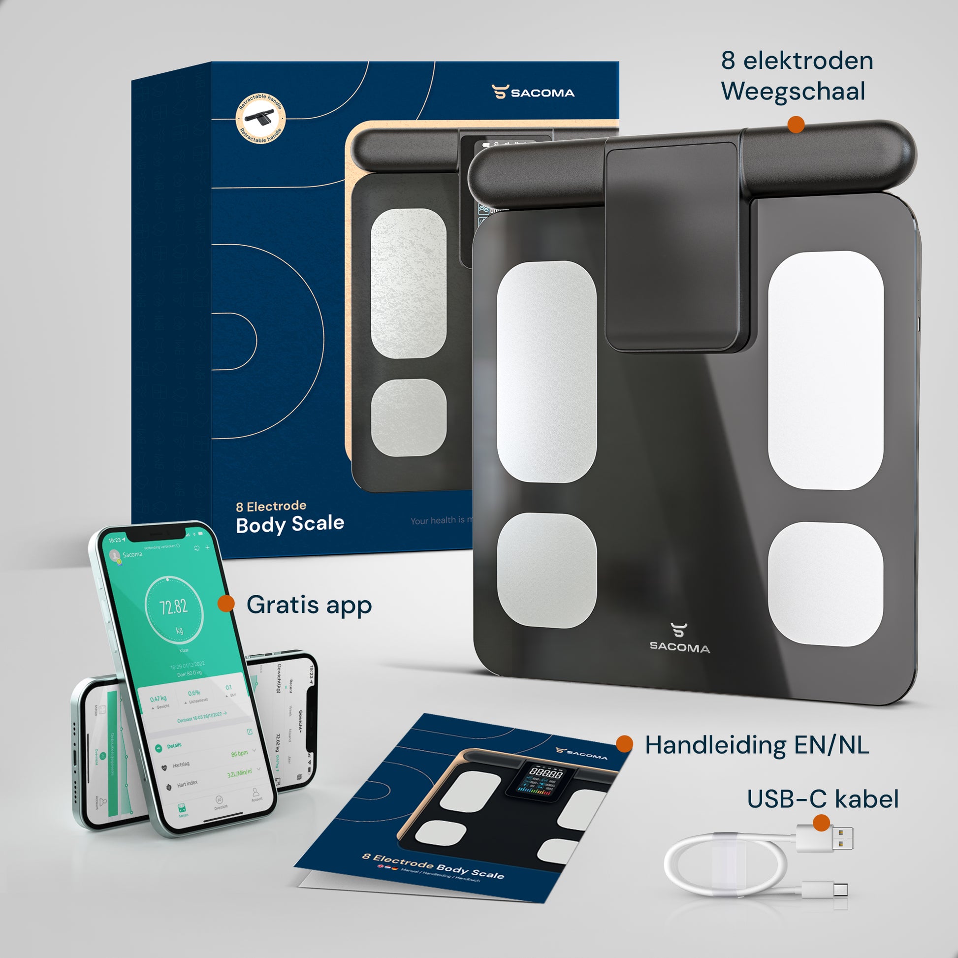 Experience the power of a full-body scan. The Sacoma® Ultra measures with 8 electrodes, including smart grips with extra sensors.